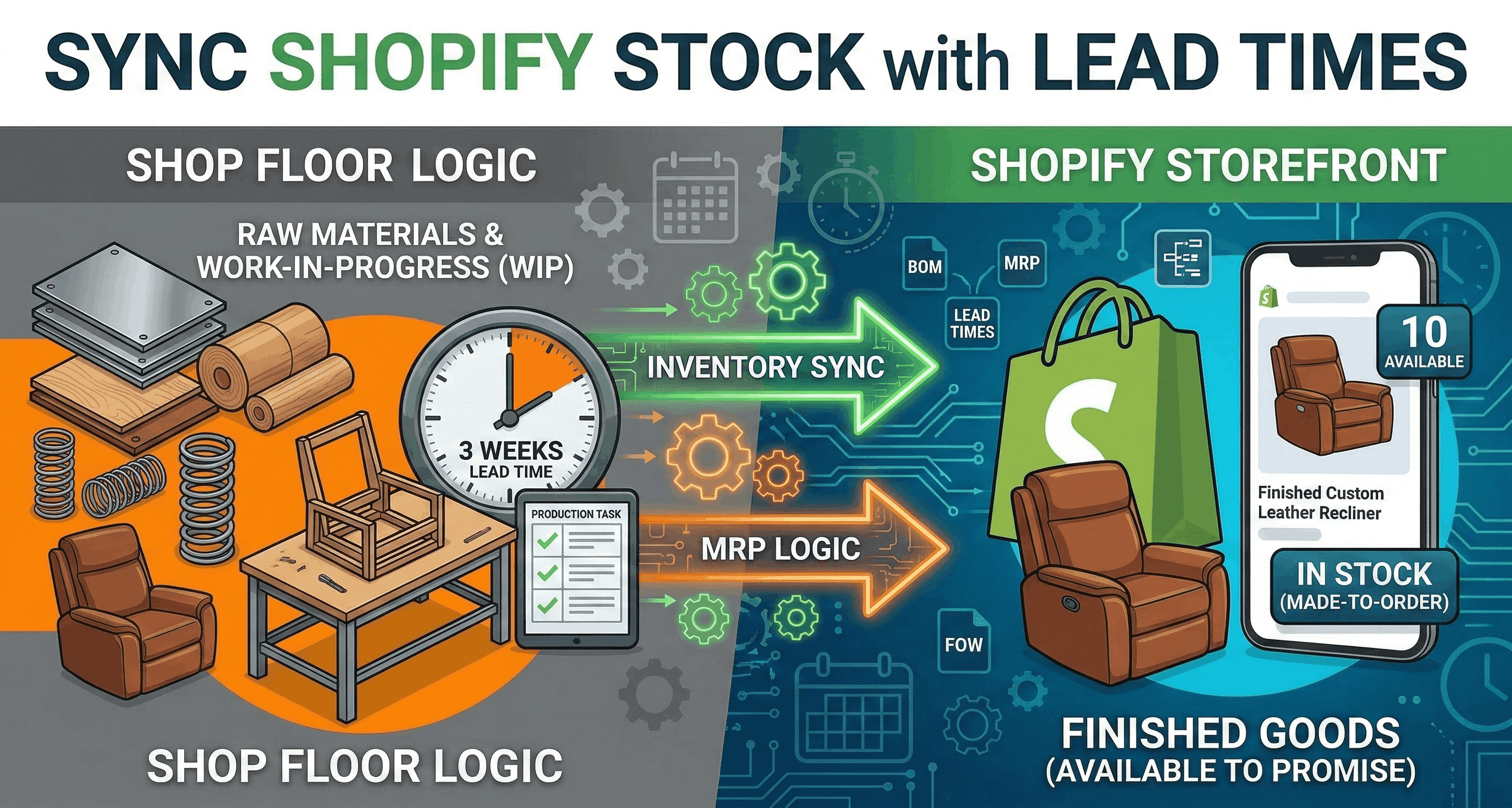 Syncing Shopify inventory with manufacturing lead times is ultimately a behavioral challenge. If your shop floor workers assemble ten chairs but forget to click "Complete" on their production tablets, the MRP thinks the wood is still raw. Shopify continues to display "Out of Stock." Revenue stalls.